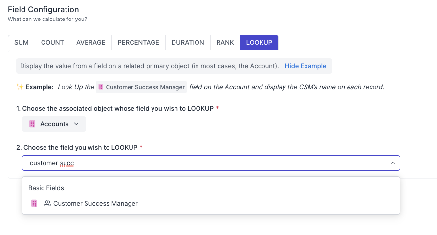 - LOOKUP fields will give users the ability to see Account Level data on the Opp, Contact, and Additional Object records. For example, add Account Owner to associated Opportunities and filter segments. Compatible with CSV Export.