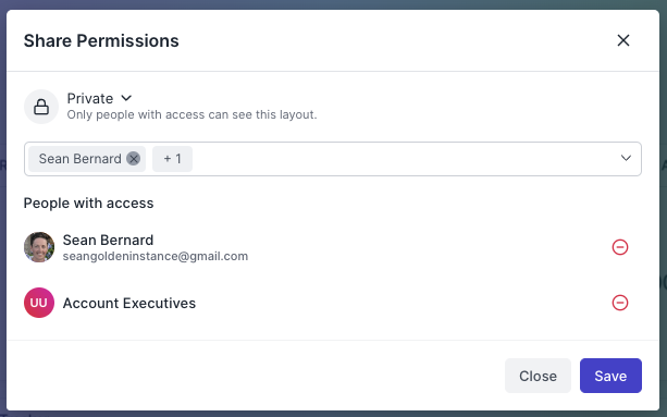 Admins can configure who can see layouts - make them private, available for everyone, or lock down to individual users or groups.
