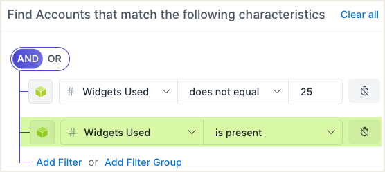 [additional object] is presentfilter to return only exact matches. Otherwise, results may include records that don’t exist in the additional object.