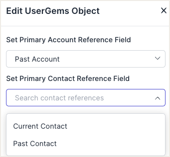 Choose which reference field for the account and contact object (see above) to designate as primary in the object configuration. If multiple reference fields exist, select the primary reference field you want to use.