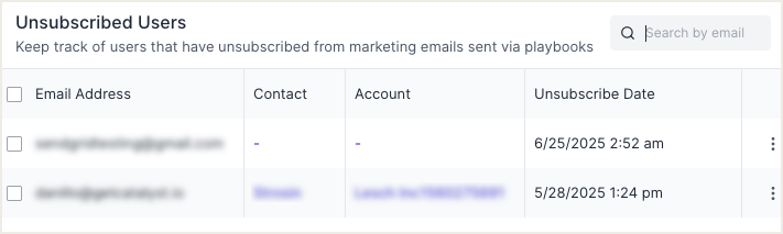 Within Settings, you can keep track of users that have unsubscribed from marketing emails sent via playbooks.