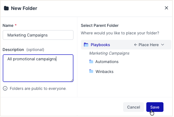 - Create new playbooks directly inside folders