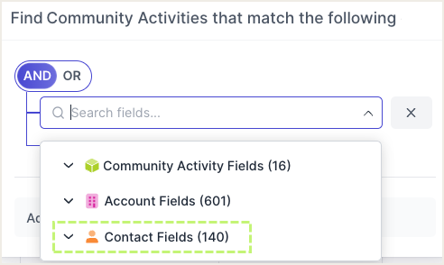 Use case: Create a segment that shows all community activities (additional object) where the associated community member is a current CAB participant (contact field).